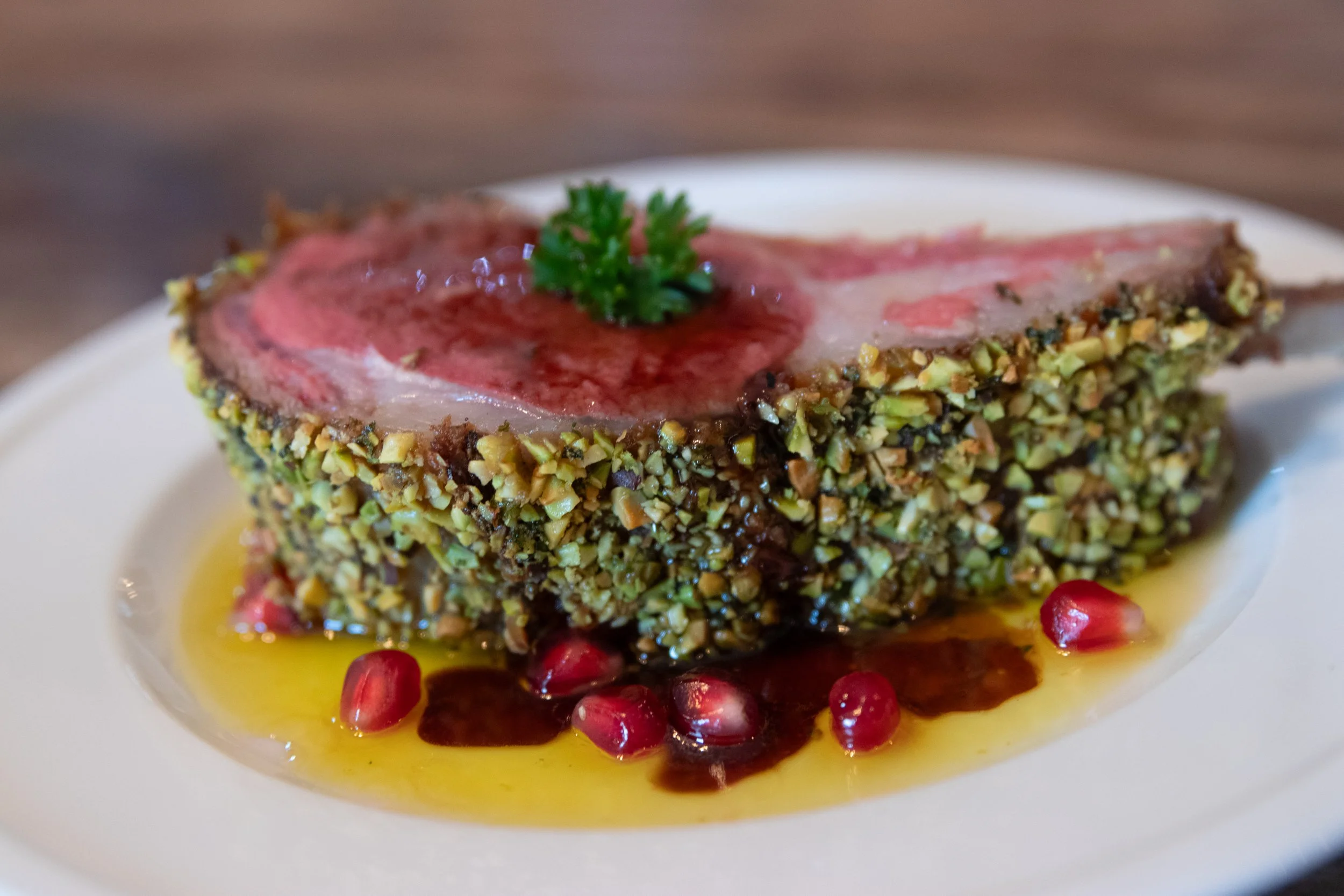 Braised Lamb Shanks: Slow-cooked lamb, creamy polenta, red wine reduction.